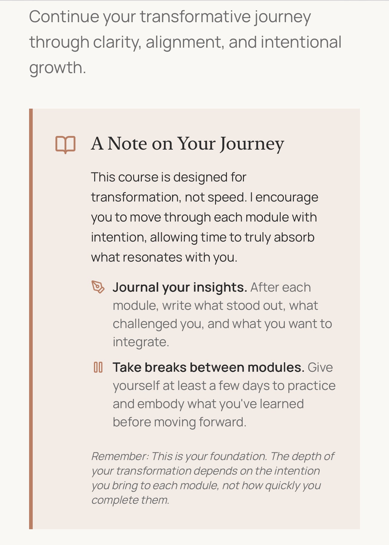 If you approach this experience intentionally and give yourself the time to fully engage with the process, the return becomes evident. Your thinking begins to shift. Clarity awakens. Alignment begins to take shape. When you stay committed to the experience and allow the work to refine your thinking, the results will naturally begin to show in the way you move, decide, and live.