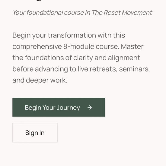 The Reset Clarity Guided Experience™ was designed to help you reset the way you think so you can begin moving through life with greater clarity, calm, and intention.
